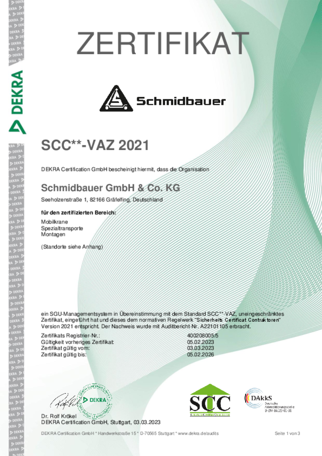 Schmidbauer GmbH & Co. KG has completed the certification process with DEKRA Certification GmbH. The certification is being conducted according to Standard ISO 50001:2018, ISO 9001:2015 and SCC** VAZ 2021.