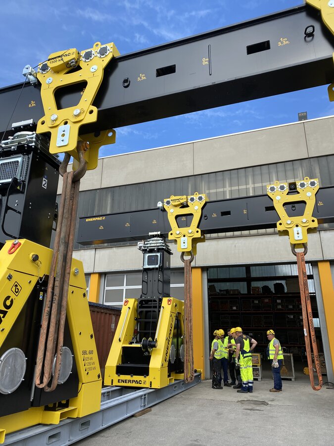 The Enerpac SBL600 is the first hydraulic lifting frame from Schmidbauer. "The SBL600 is ideal for the project handling cable drums and we were particularly impressed with the ease of use of the gantry on site. We have invested in six standard-20m-fixed-roof containers which allow us to transport the SBL600 by road, rail, and sea to projects around the world,” comments Philipp Verges, Sales Manager Global Projects of the Schmidbauer Group.