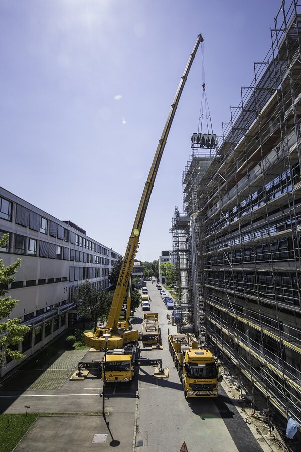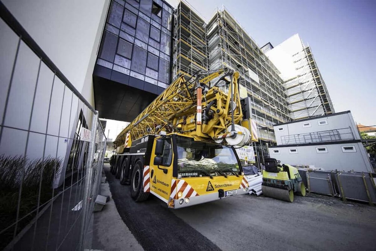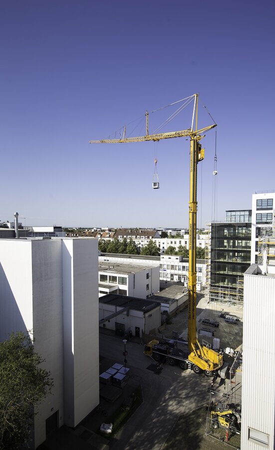 Under tight conditions, two of our cranes were in operation on 28.07. at the "neue balan" in the east of Munich. In addition to the compact MK 140 mobile crane, the ATF 220 supported the construction work on the building complexes, which will house modern offices in the future. Located in the district border between Haidhausen, Obergiesing and Ramersdorf, the construction of the "new balan" was based on the concept to use available structures: the existing buildings were completely renovated and converted, connecting on to what is already present. The area is already inhabited by a mixture of companies and sectors like IT, stock exchange, advertising, clothing, media, communication, gastronomy and the like.