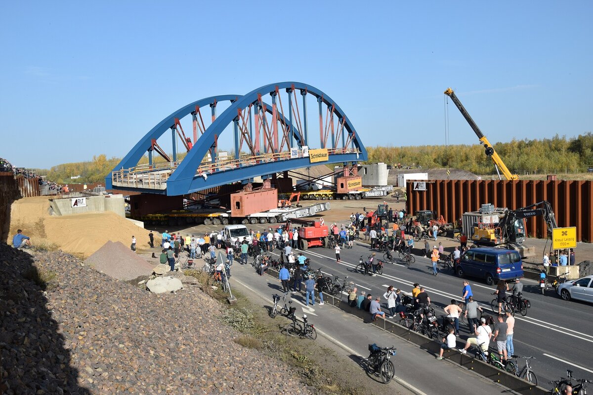 Seeing a bridge moving into position – such a colossal transport is rare to witness. Accordingly, many people didn't want to miss the spectacle offered by Schmidbauer's assignment in Rötha near Leipzig. The campaign was also present in the media, including RTL, dpa and Die Zeit.