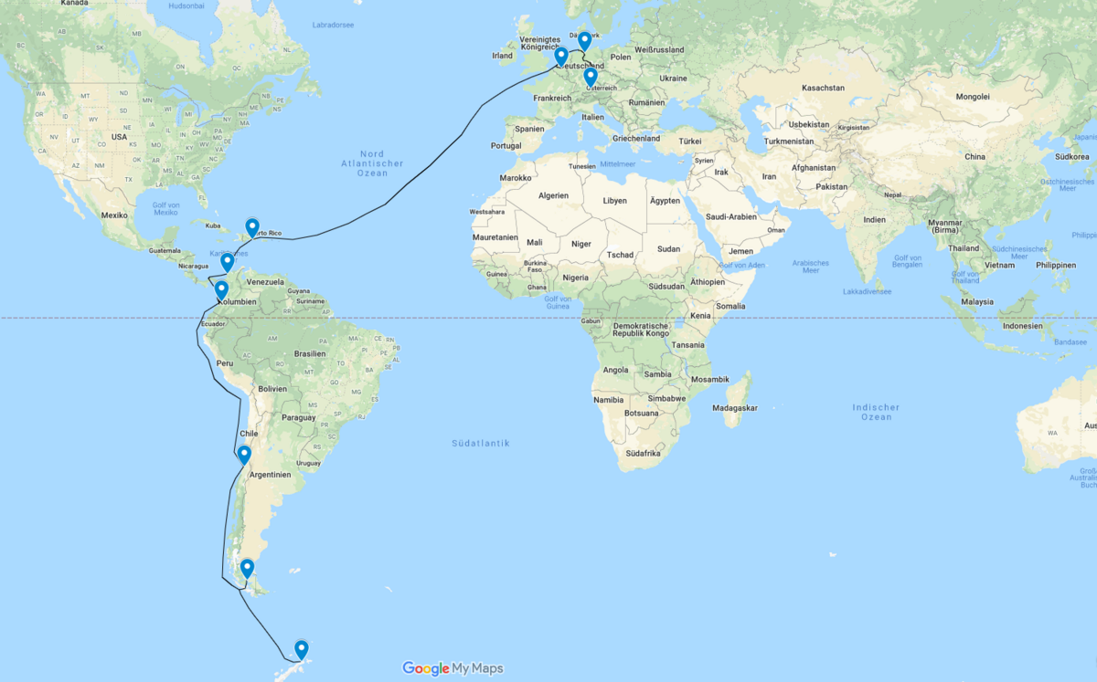 Its first destination: the port of Hamburg. From there, the route led in several stages along the North Atlantic and the west coast of South America to Antarctica.